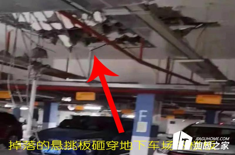 如上圖所示,從樓房掉下的懸挑板直接砸向的地面。由于懸挑板重量大概有幾百斤,并且是從29樓高空墜落下來,因此把該小區(qū)的地下停車場的樓板直接砸穿了,由此可見該沖擊力以及危險性是有多高。如果當初可以及時進行全面的房屋檢測,并且早日發(fā)現(xiàn)異常并進行加固處理,那么就不會導致此次安全隱患事件的發(fā)生,當然這些都是馬后炮了。但在無形之中也提醒了我們,定期做好房屋檢測很有必要,未雨綢繆總歸不是什么壞事。