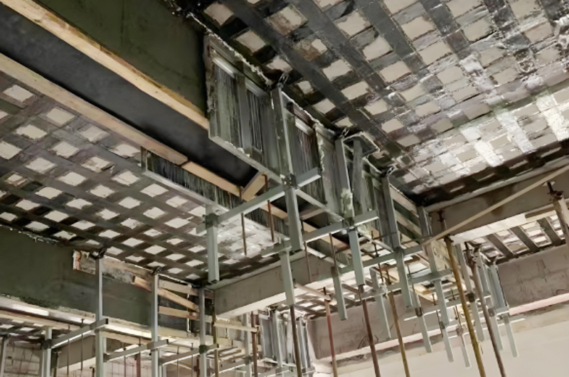 使用碳纖維加固后的樓板或墻面,在裝修前必須加鋪一層保護層。這不僅可以保護加固層,還可以防止裝修材料如水泥灰砂、滑石粉等進入加固層,從而影響加固效果。