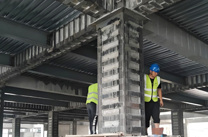 固定與連接:使用焊接或螺栓連接的方式將鋼板固定在柱子上,確保鋼板與柱子表面緊密貼合,無空隙,型鋼構架上下端應可靠連接、支承牢固。