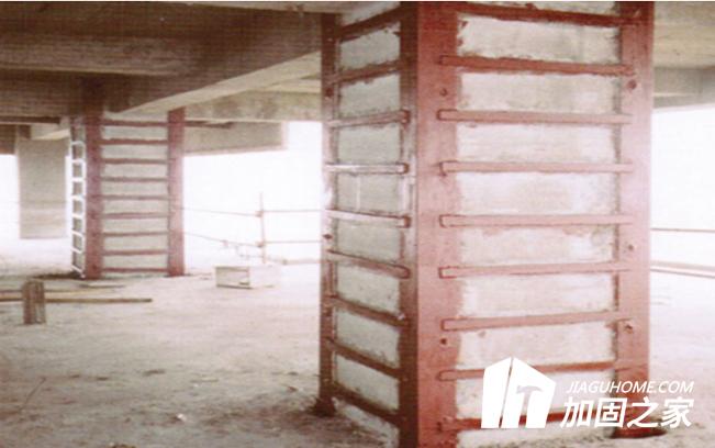 該技術(shù)是將角鋼、鋼板箍通過膠栓和灌注高強無機粘結(jié)材料與原混凝土柱可靠地連結(jié)成一個整體,該方法在新增角鋼截面提高柱子承載力的同時,還因新增鋼板箍的橫向約束作用,使原混凝土柱產(chǎn)生良好的三軸應(yīng)力狀態(tài),因而可以大幅度提高柱子的承載力。