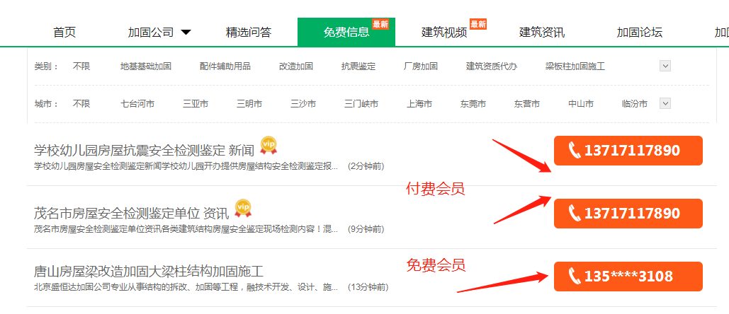 免費(fèi)會(huì)員一天只可以發(fā)布一條信息一個(gè)月最多可發(fā)布10條信息,聯(lián)系電話(huà)不能正常顯示,手機(jī)端最下面菜單欄電話(huà)只能放加固之家平臺(tái)的號(hào)碼;然而付費(fèi)會(huì)員發(fā)布信息擁有尊貴VIP標(biāo)識(shí),而且每條信息能夠正常顯示聯(lián)系電話(huà),而且一天發(fā)布信息條數(shù)沒(méi)有限制,還有手機(jī)端最下面菜單欄的聯(lián)系電話(huà)也能同步,大大方便用戶(hù)聯(lián)系。